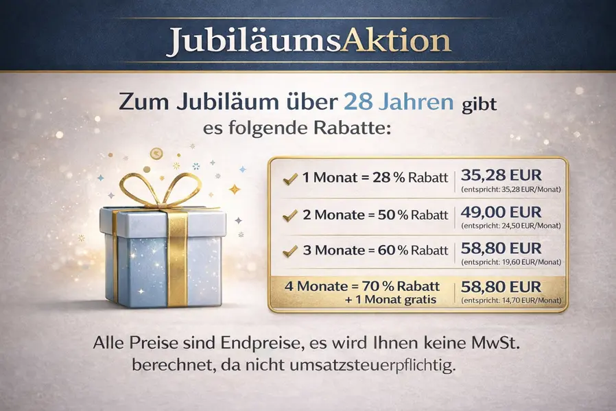 Alle Preise sind Endpreise, es wird Ihnen keine MwSt. berechnet, da nicht umsatzsteuerpflichtig.