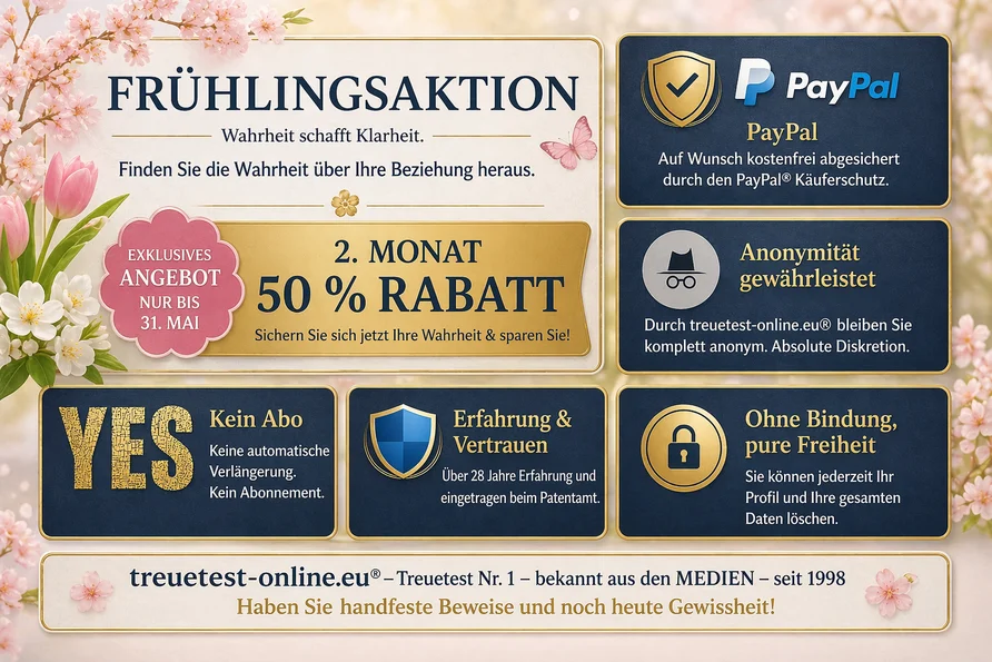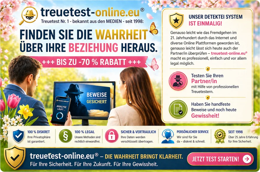 Finden Sie heraus, ob Ihr Partner/in untreu ist! Mit treuetest-online.eu® können Sie die Wahrheit über Ihre Beziehung erfahren - das Original seit 1998.